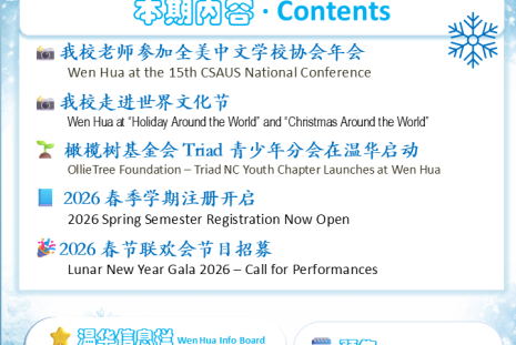 《温华中文学校 · Winter Edition | December 2025》校刊电子版现已发布,欢迎大家在线阅读,了解本学期的重要成果以及 2026 年春季学期的重要信息: