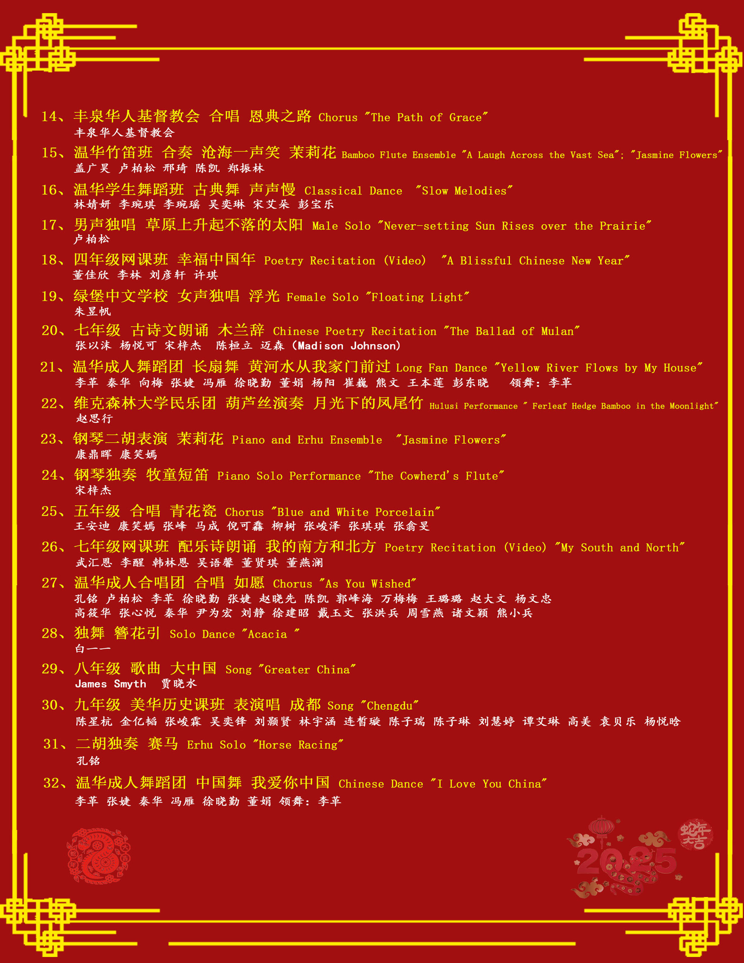 2025 Wen Hua Chinese New Year Gala - Recording