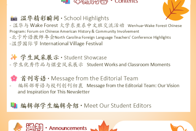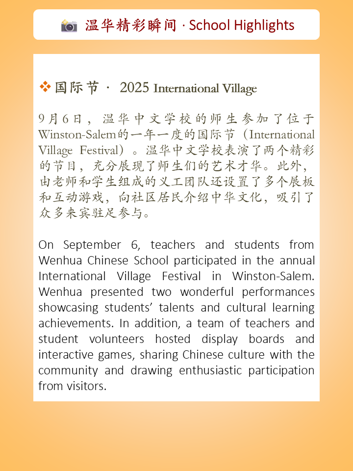 — Editorial Team, Wenhua Chinese School Newsletter