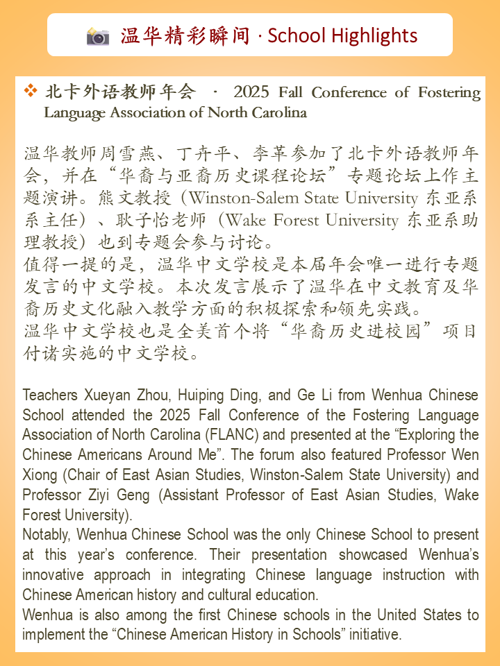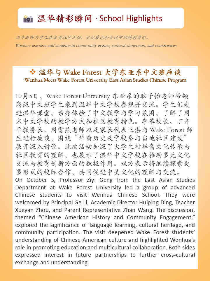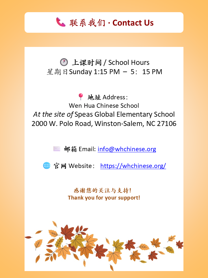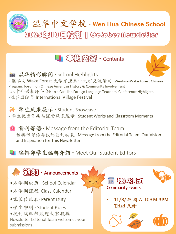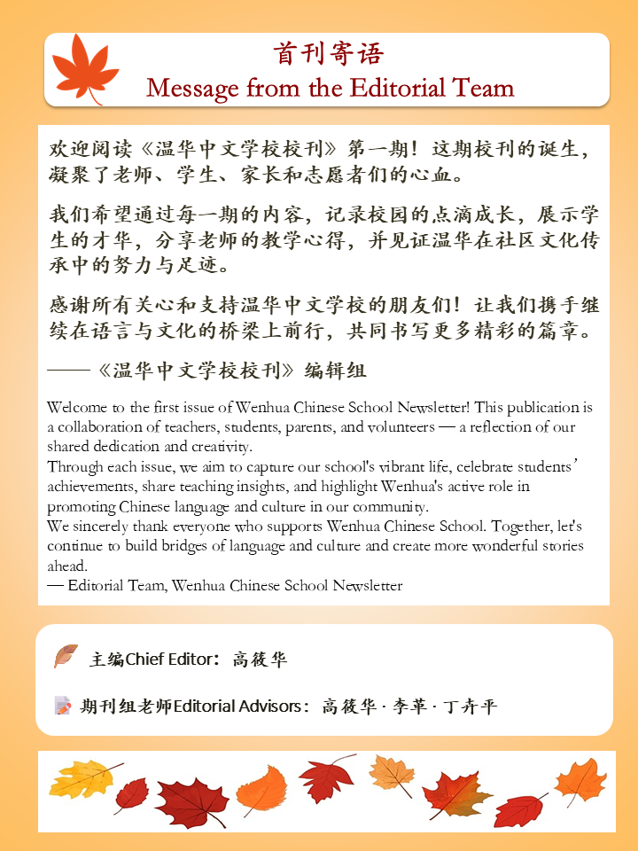 — Editorial Team, Wenhua Chinese School Newsletter